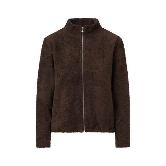 Cute Terry Zip Up Jacket Brown